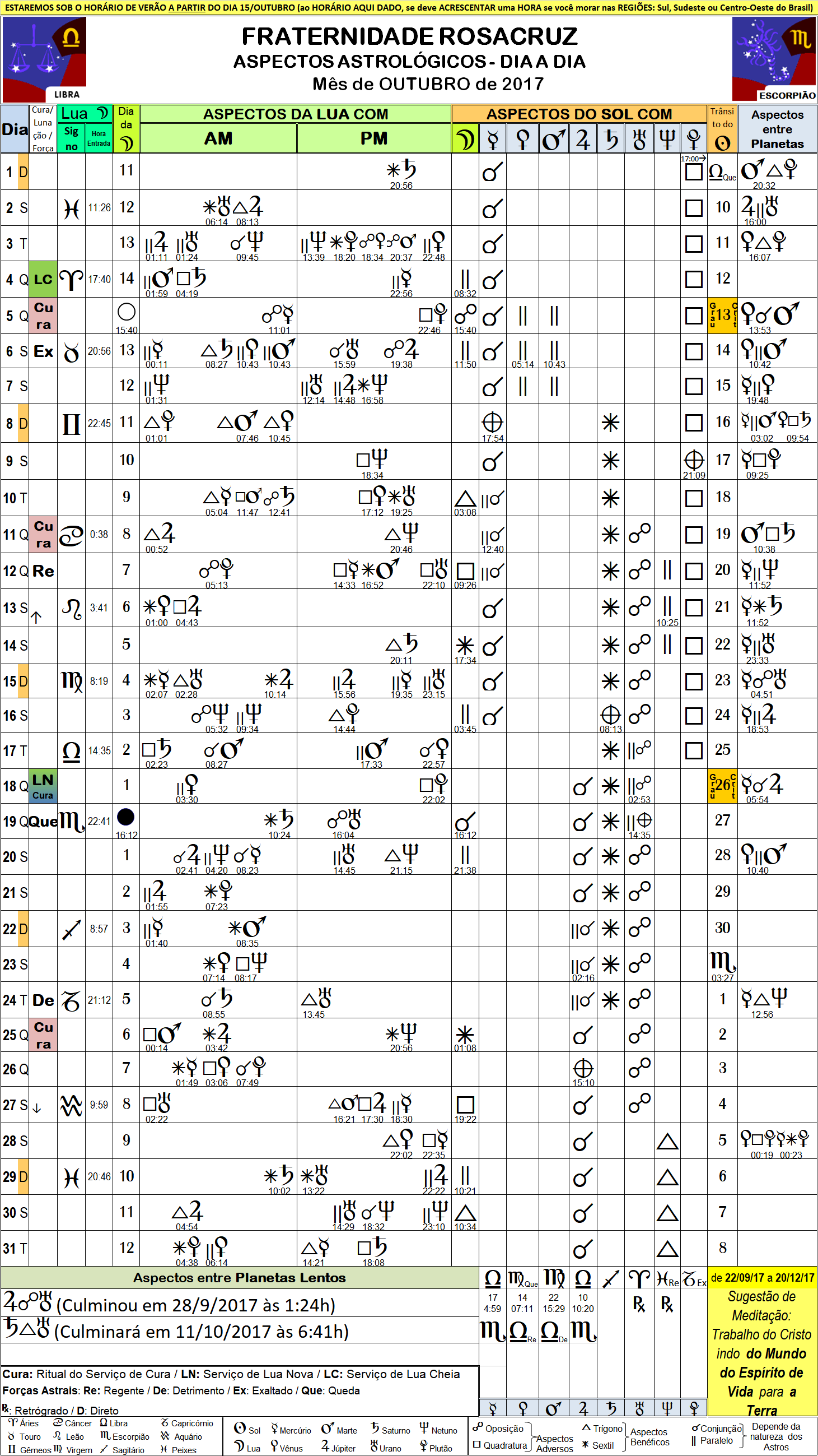 10_17 – Folha com Aspectos Astrológicos Rosacruz – Outubro de 2017