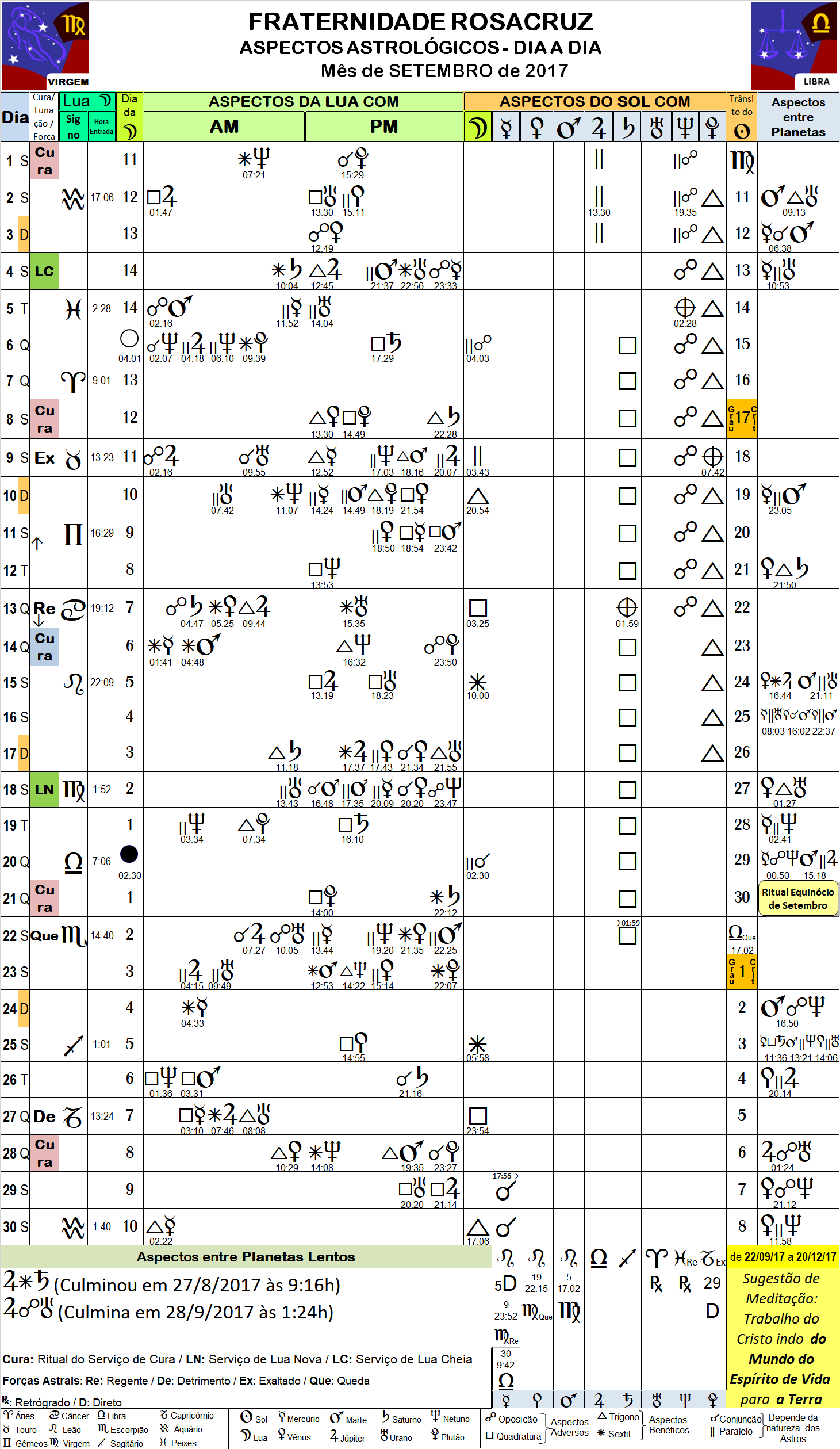 09_17 – Folha com Aspectos Astrológicos Rosacruz – Setembro de 2017