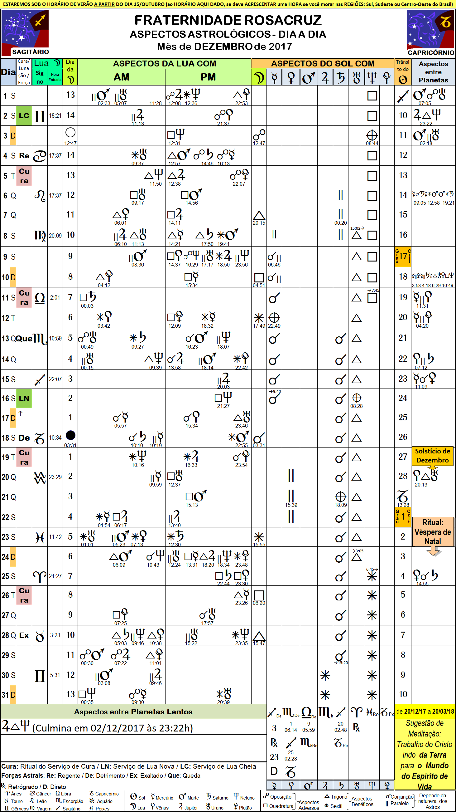 12_17 – Folha com Aspectos Astrológicos Rosacruz – Dezembro de 2017