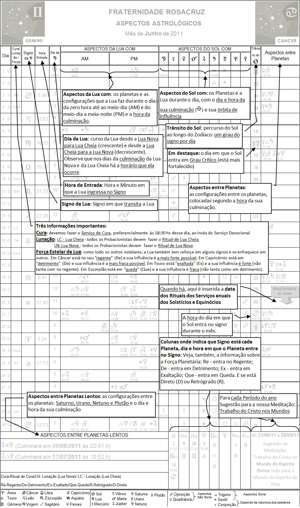 Quer saber como lê-la? É só clicar aqui: Descrição das Colunas e dos Dados da Folha com Aspectos Astrológicos Rosacruz
