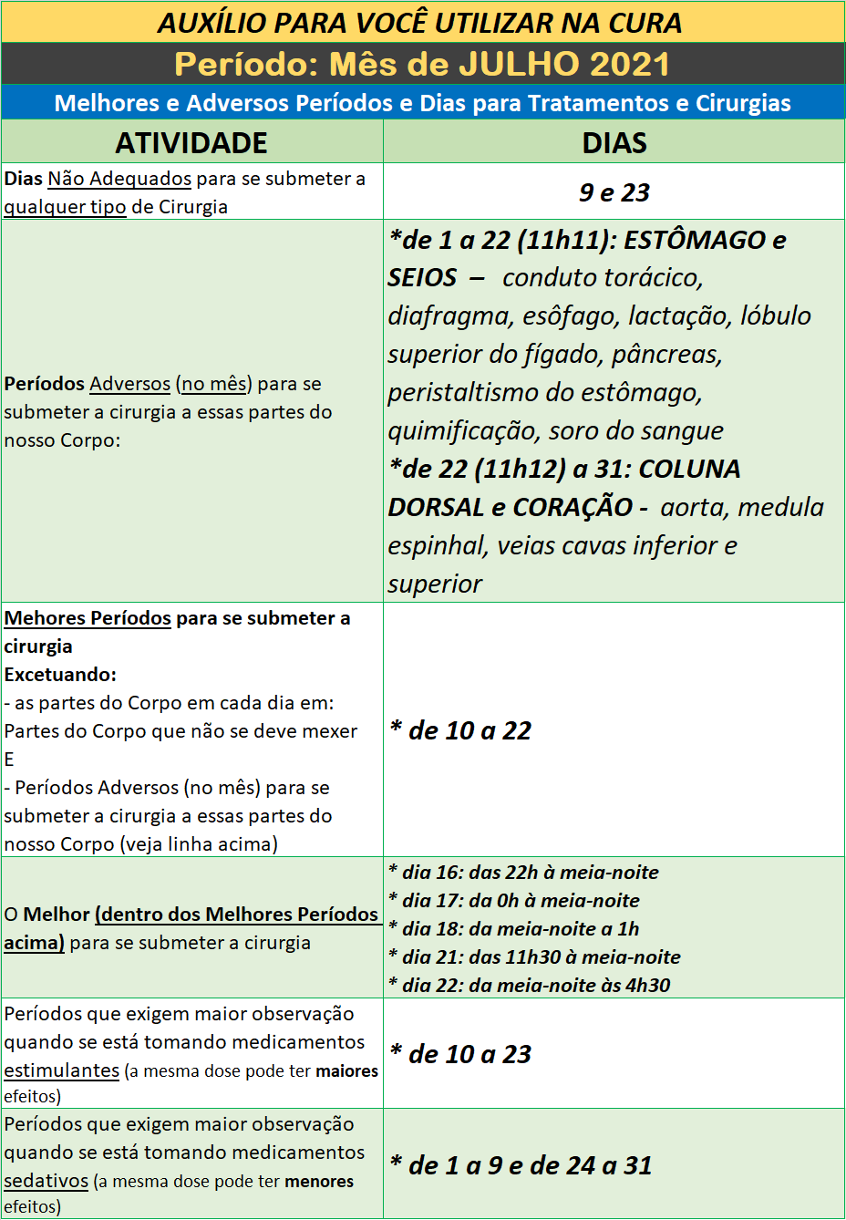 Para obter mais detalhes sobre o Melhor Período para Cirurgias nesse mês, clique aqui